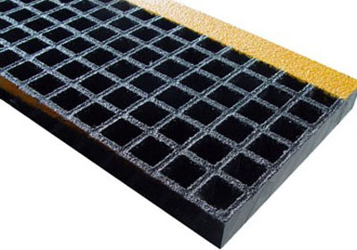 樓梯踏步采用高強玻璃鋼格柵,前緣制作不同顏色的防滑表面封閉條,產品可以固定在拉擠型材等及其他材質的樓梯結構上作為臺階。產品防滑,絕緣質輕,安裝方便,在所有的工業環境作為安全防護使用效果良好。