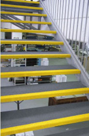 樓梯踏板采用玻璃鋼制作,產品為縱橫交錯纖維布結合形成,表面粘結石英砂產品具有良好的強度及較強的耐磨性。產品可以固定在樓梯的臺階上,起到防滑安全行走,并確保耐腐蝕及標識安全的作用。